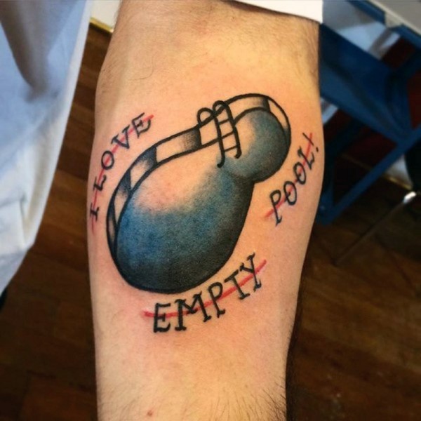 手臂简单的彩色卡通小水池与字母纹身图案
