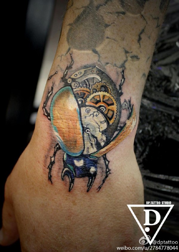 机械风甲壳虫纹身图案