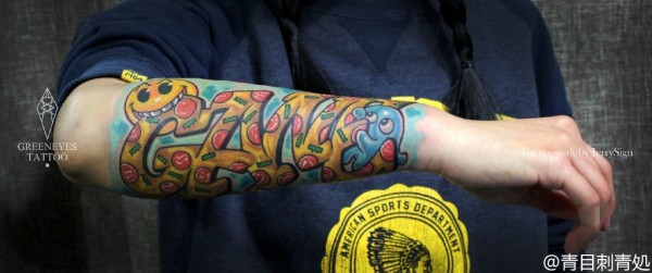 复古卡通红唇美女手臂纹身_卡通纹身图案大全_纹身图吧