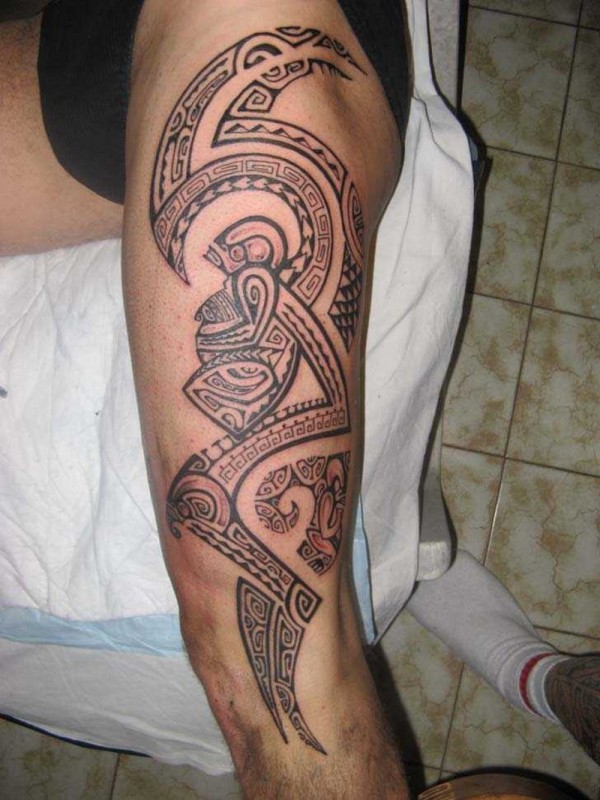 大腿波利尼西亚风格的黑色部落饰品纹身图案