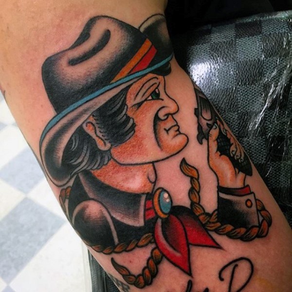 手臂old school西部牛仔手枪纹身图案