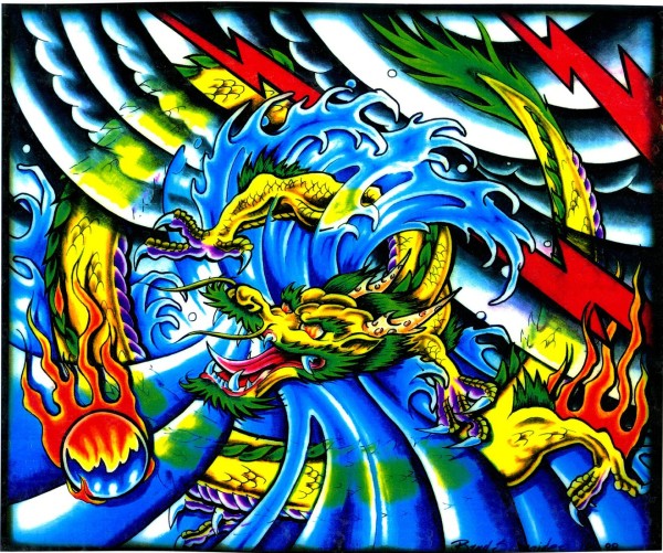 龙纹身手稿_一组老传统黑灰龙手稿纹身图案
