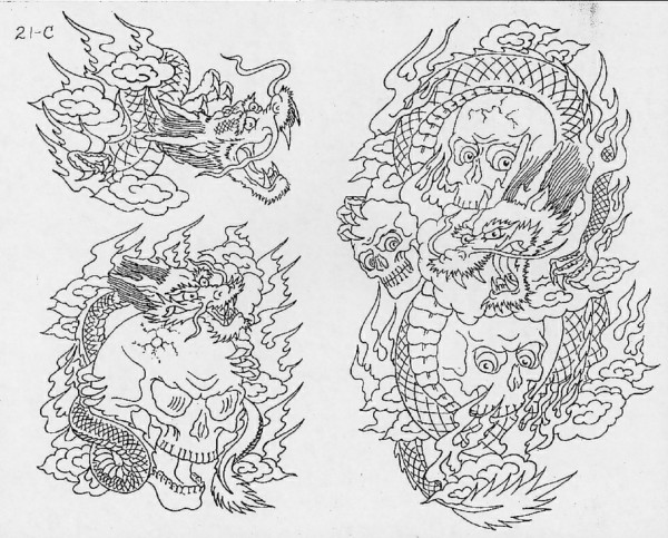 龙纹身手稿_一组老传统黑灰龙手稿纹身图案