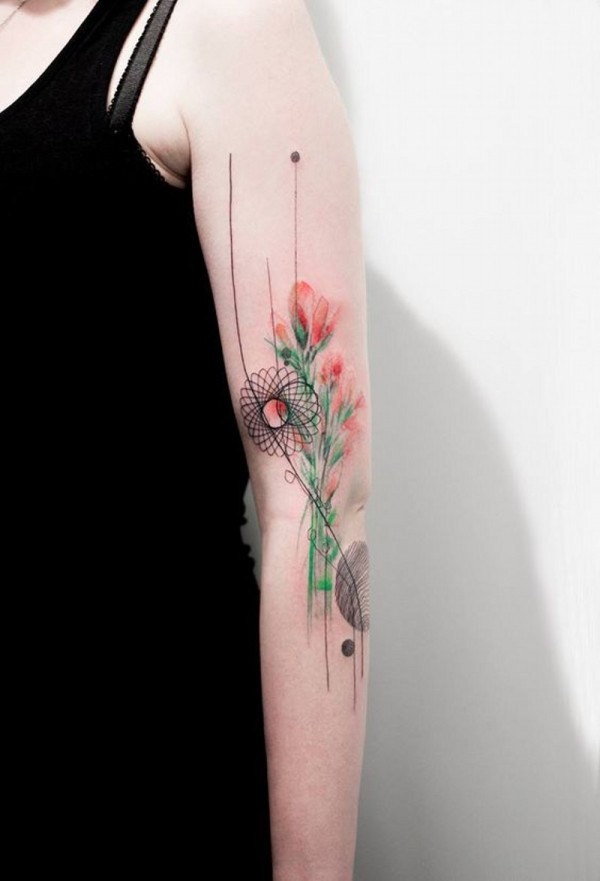 手臂可爱的彩绘花朵和神秘装饰纹身图案