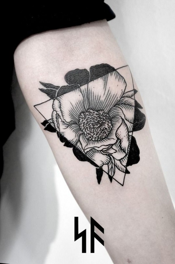 手臂黑色线条花朵与三角形纹身图案