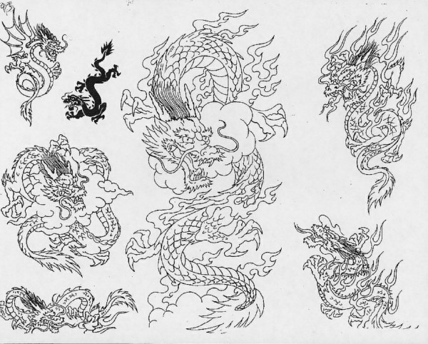 龙纹身手稿_一组老传统黑灰龙手稿纹身图案