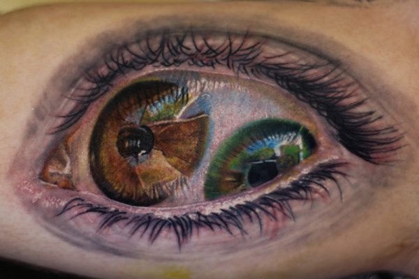 手臂恐怖逼真的眼睛和两个眼球纹身图案