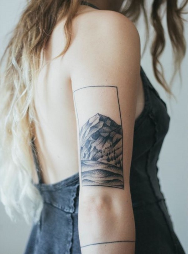 女生手臂简单的黑色小山丘纹身图案