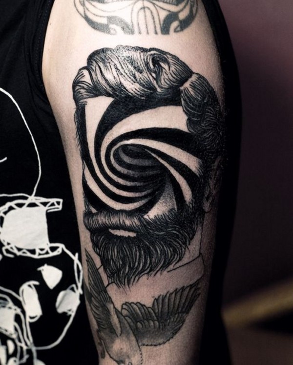 有趣的黑色无脸肖像与催眠装饰手臂纹身图案