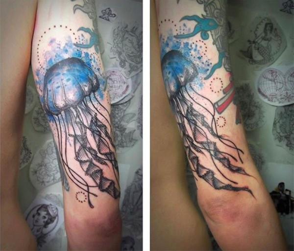 非常漂亮的彩色自然水母手臂纹身图案