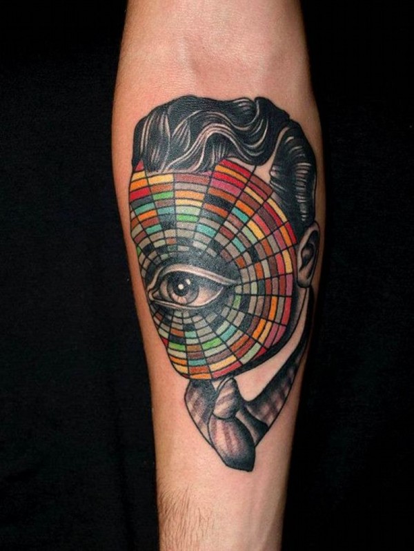 手臂令人难以置信的五彩肖像和眼睛纹身图案