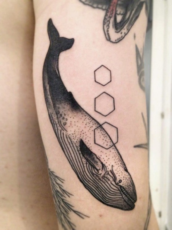很酷的黑色点刺神秘鲸鱼纹身图案