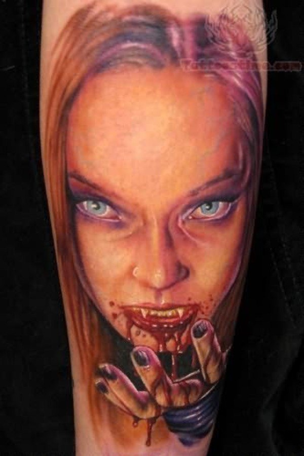逼真的彩绘血腥吸血鬼女性手臂纹身图案