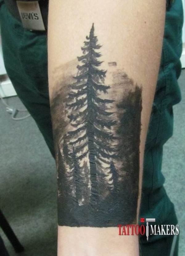 手臂神秘的黑色树林纹身图案
