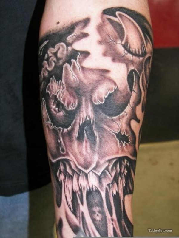 手臂恐怖风格黑白骷髅和眼球纹身图案