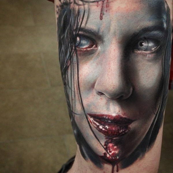非常逼真的彩绘血腥女吸血鬼手臂纹身图案