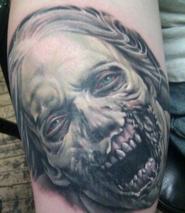 非常写实的邪恶僵尸肖像手臂纹身图案