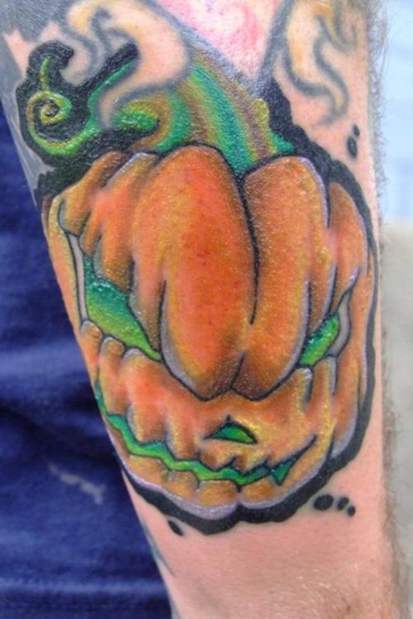 手臂漫画风格的五彩恶魔南瓜纹身图案