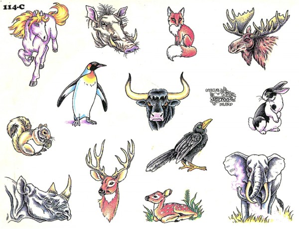一组18张漂亮的欧美newschool动物纹身手稿图案