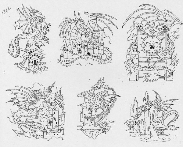 龙纹身手稿_一组老传统黑灰龙手稿纹身图案