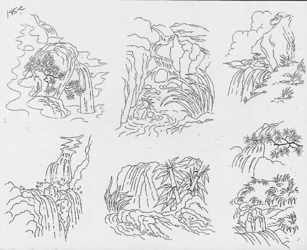 一组15张莲花纹身手稿图案素材
