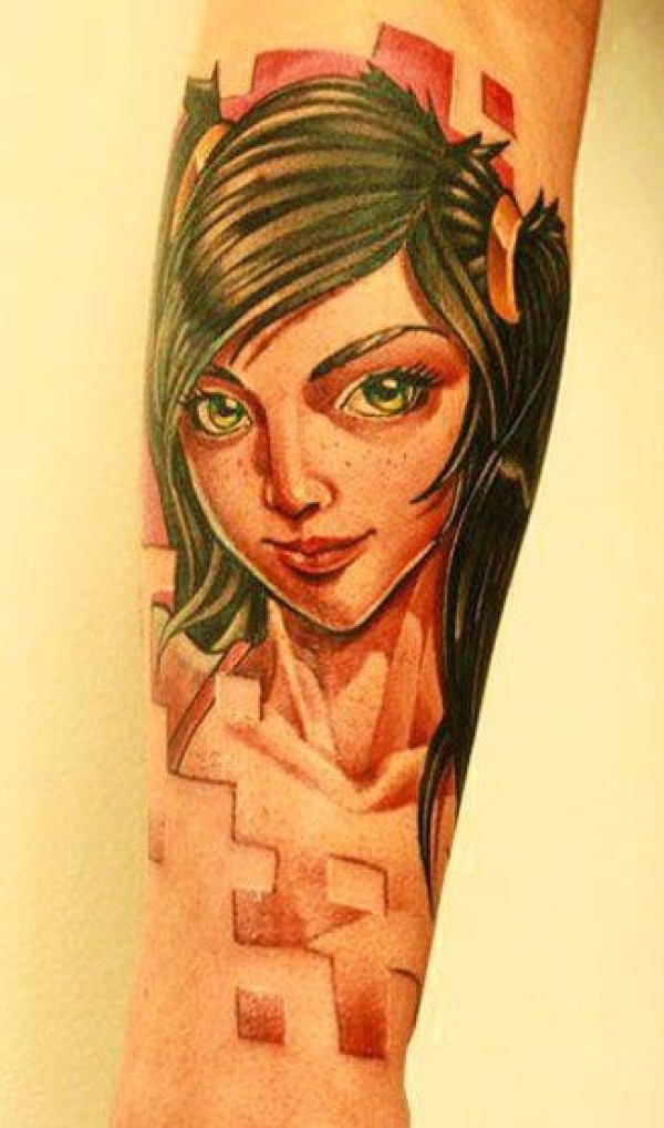 手臂卡通风格的可爱的女孩纹身图案