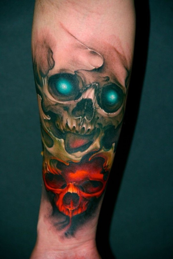 手臂神秘色彩的骷髅纹身图案