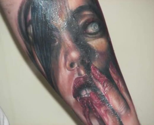 恐怖风格血腥的吸血鬼女人手臂纹身图案