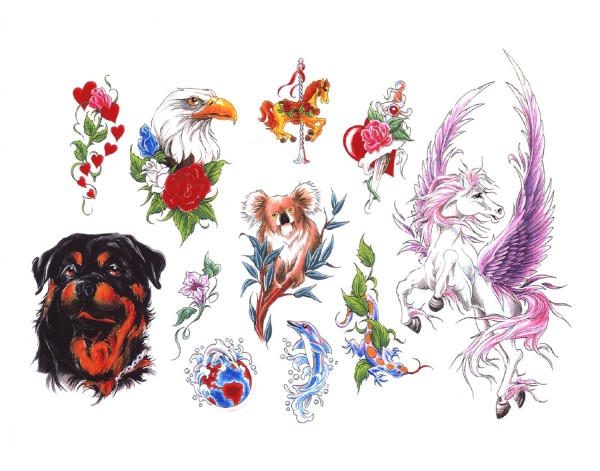 一组18张漂亮的欧美newschool动物纹身手稿图案