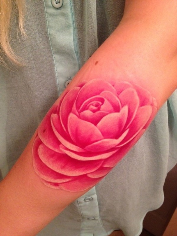 手臂可爱的幻想粉红色大玫瑰花纹身图案