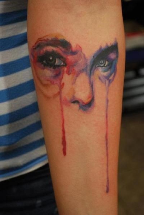 手臂水彩风格神秘的彩色眼睛纹身图案
