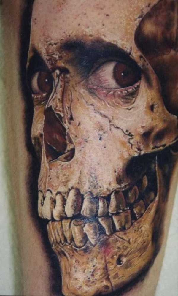 手臂惊人的非常逼真彩色骷髅眼睛纹身图案
