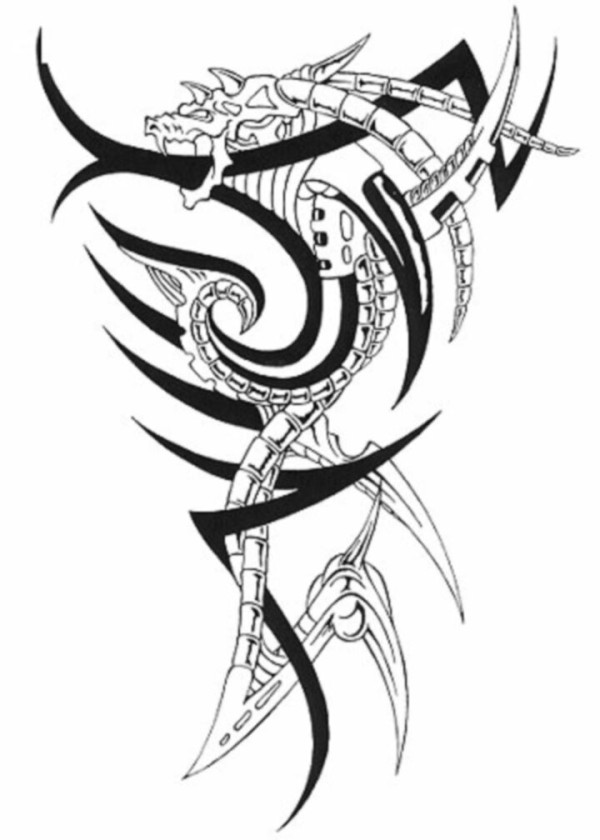 龙纹身手稿_一组老传统黑灰龙手稿纹身图案