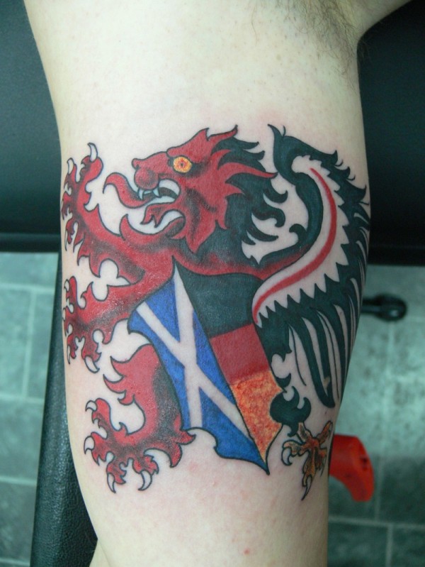手臂苏格兰狮子旗帜彩绘纹身图案