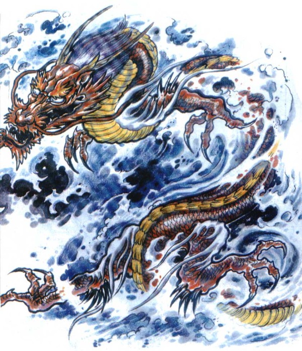 龙纹身手稿_一组老传统黑灰龙手稿纹身图案