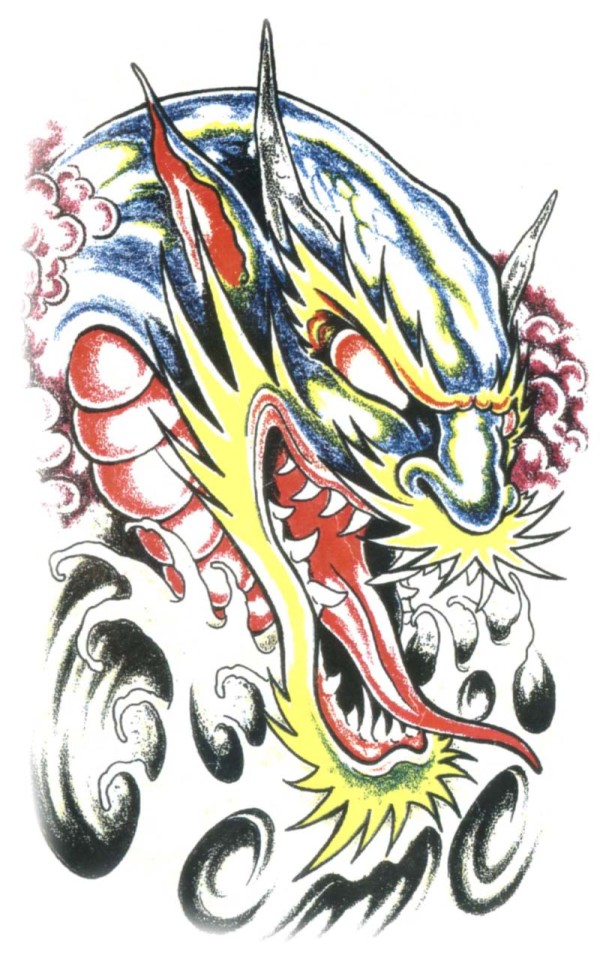 龙纹身手稿_一组老传统黑灰龙手稿纹身图案