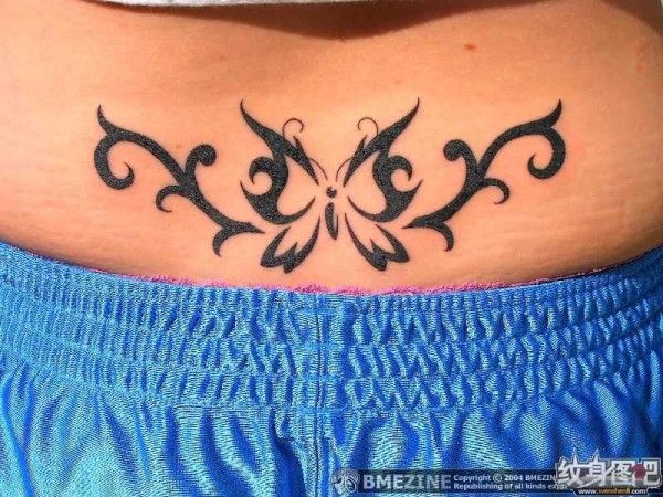 分享一款腰部时尚性感的蝶恋花纹身图案_腰部纹身图案大全_纹身图吧