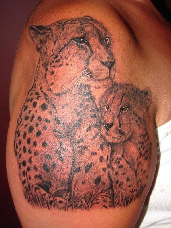 手臂灰色的猎豹母子写实纹身图案