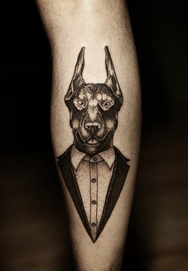 手臂有趣的设计黑白礼服杜宾犬纹身图案