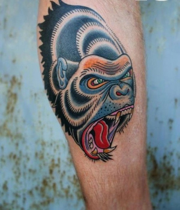 手臂丰富多彩的大猩猩头纹身图案