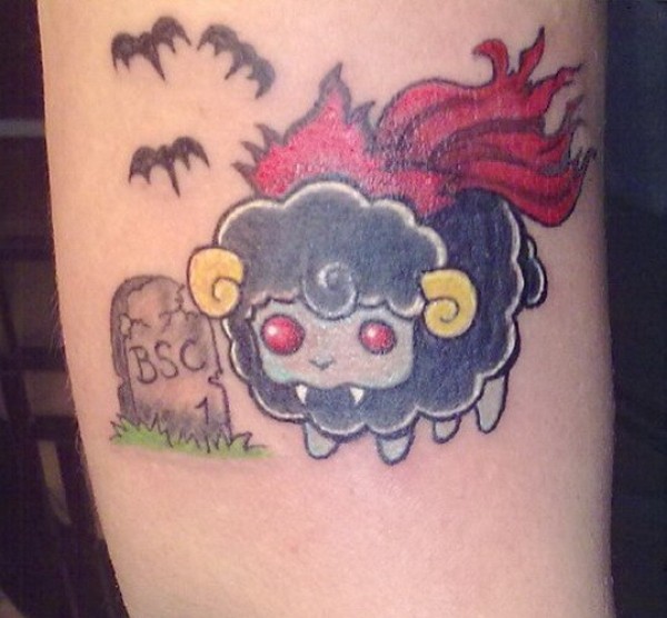 手臂彩色的卡通吸血鬼绵羊纹身图案