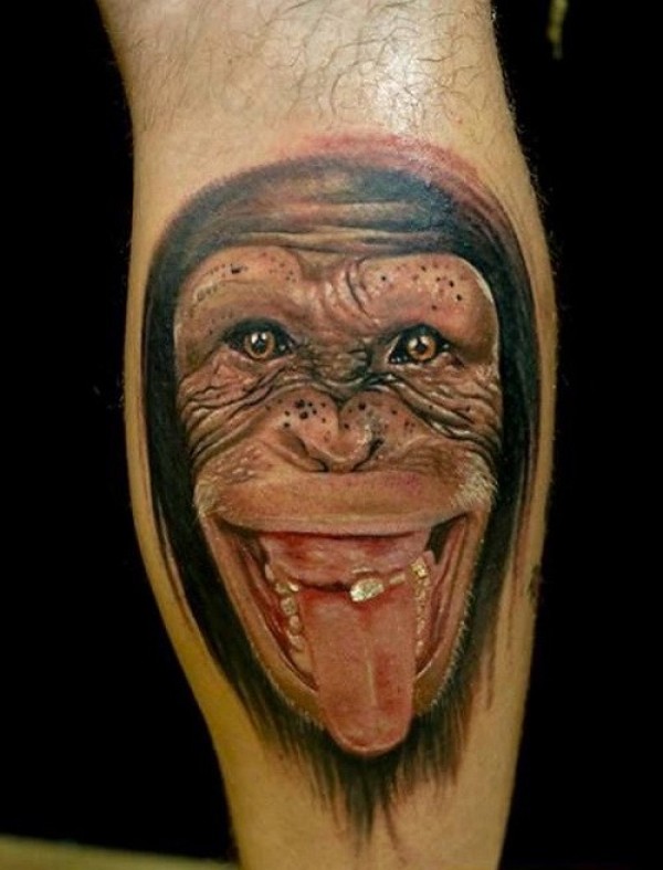 手臂奇妙的写实黑猩猩和舌头纹身图案