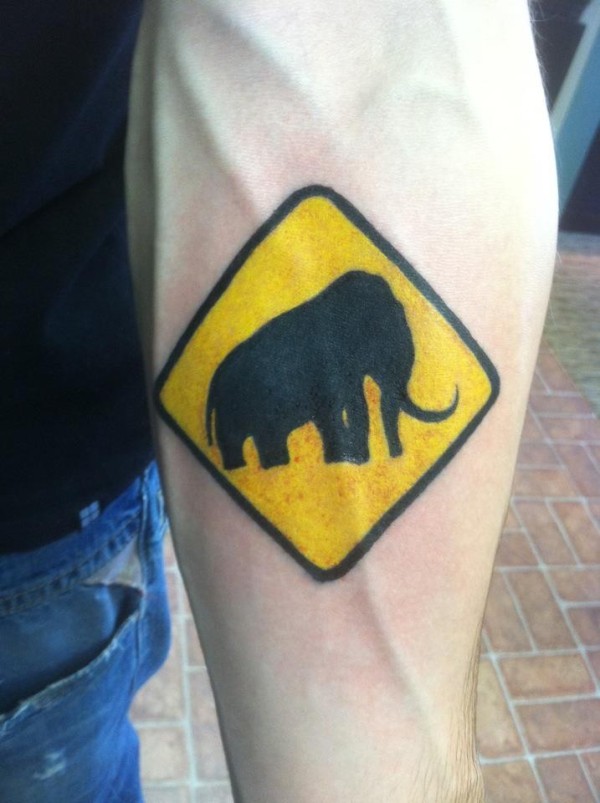 手臂上的大象交通标志纹身图案