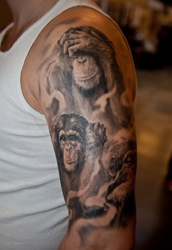 手臂令人印象深刻的一群黑白猩猩纹身图案