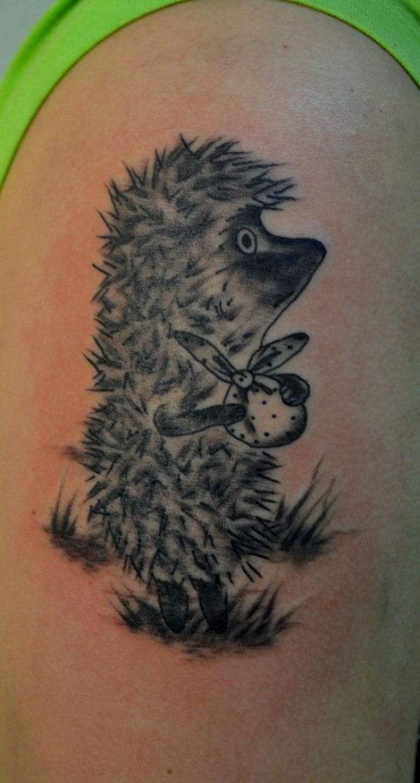 大臂可爱的黑白小刺猬纹身图案