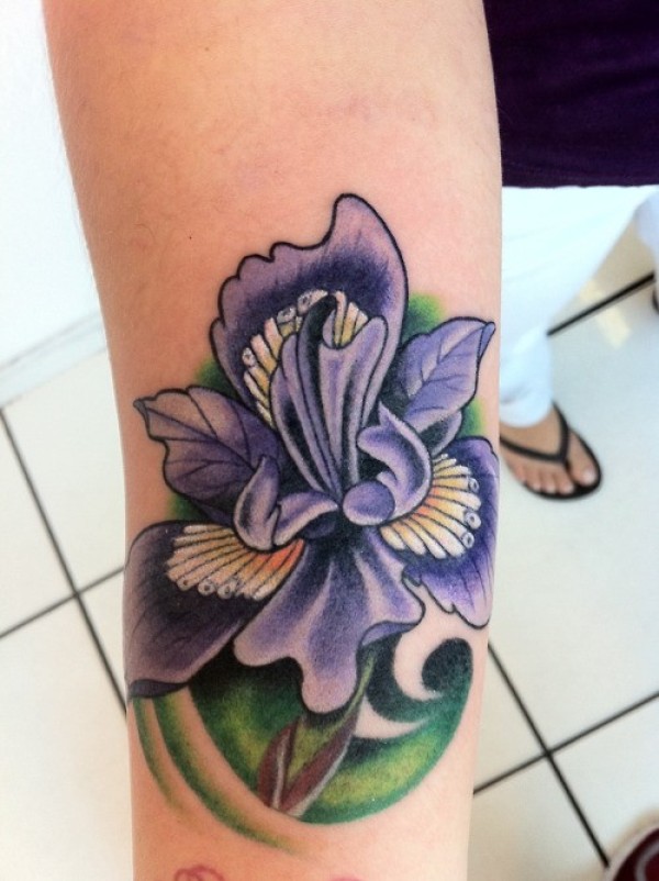 手臂很酷的卡通彩色鸢尾花纹身图案