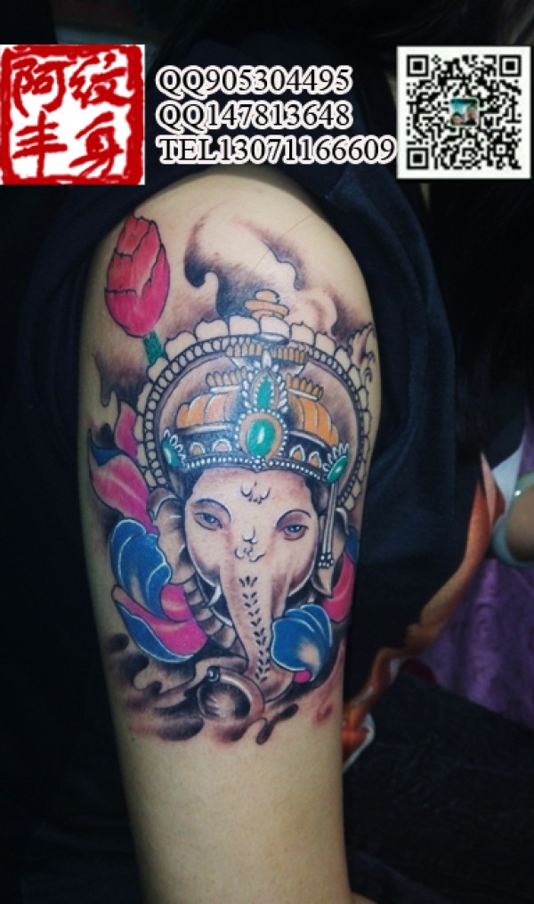 手臂黑灰象神_一组12张手臂上的黑灰象神纹身图案作品欣赏
