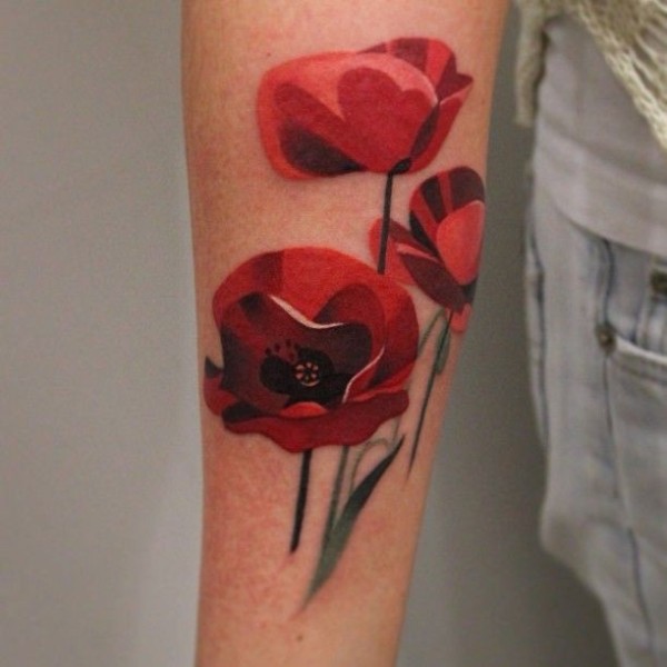 可爱的红色罂粟花手臂纹身图案