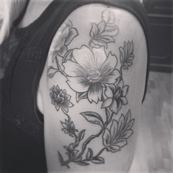 大臂灰色的花卉old school纹身图案