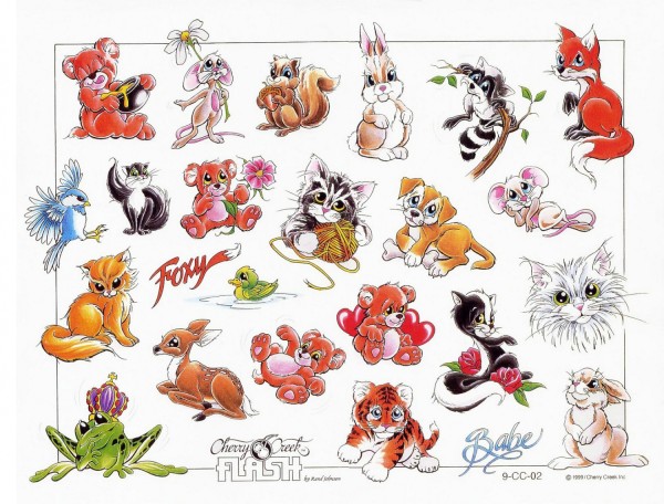 一组18张漂亮的欧美newschool动物纹身手稿图案